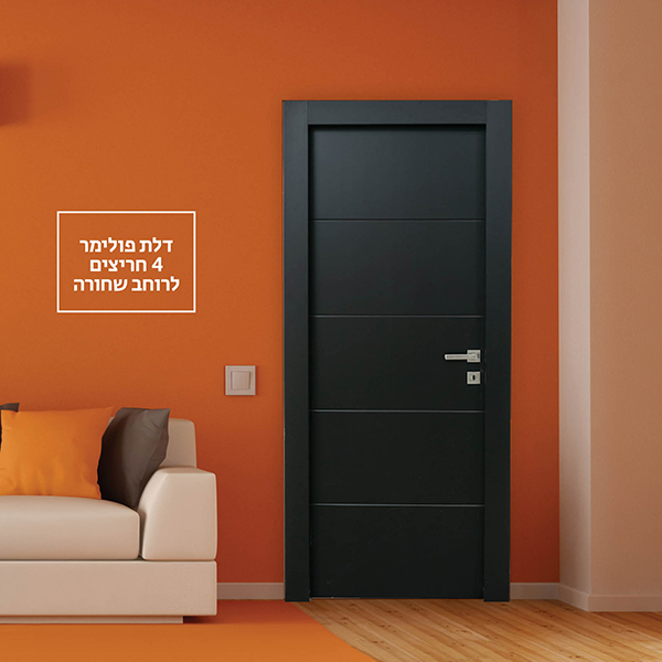דלת שחורה חלקה עם פסי זהב