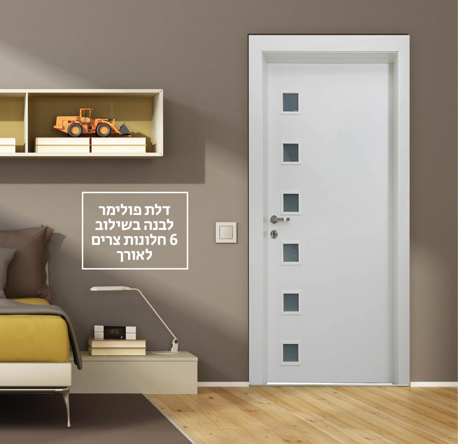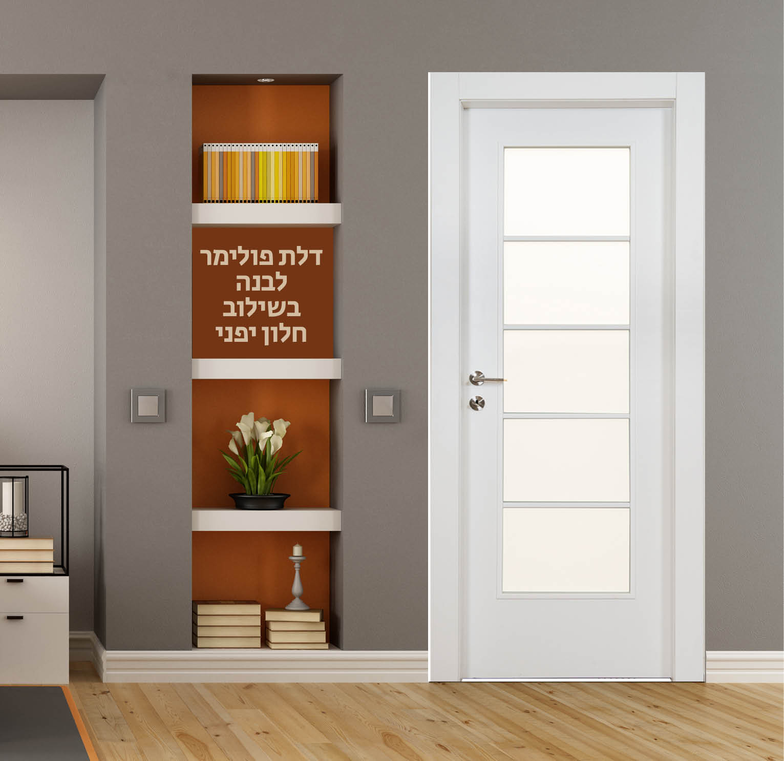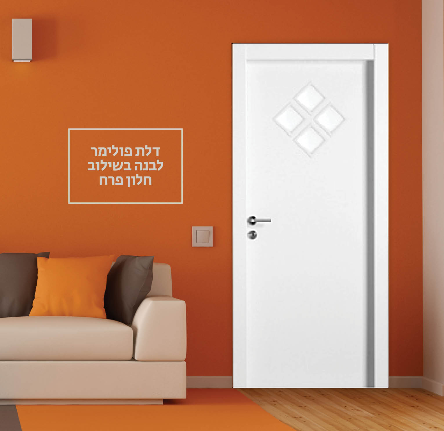 דלת פולימר לבנה בשילוב חלון פרח