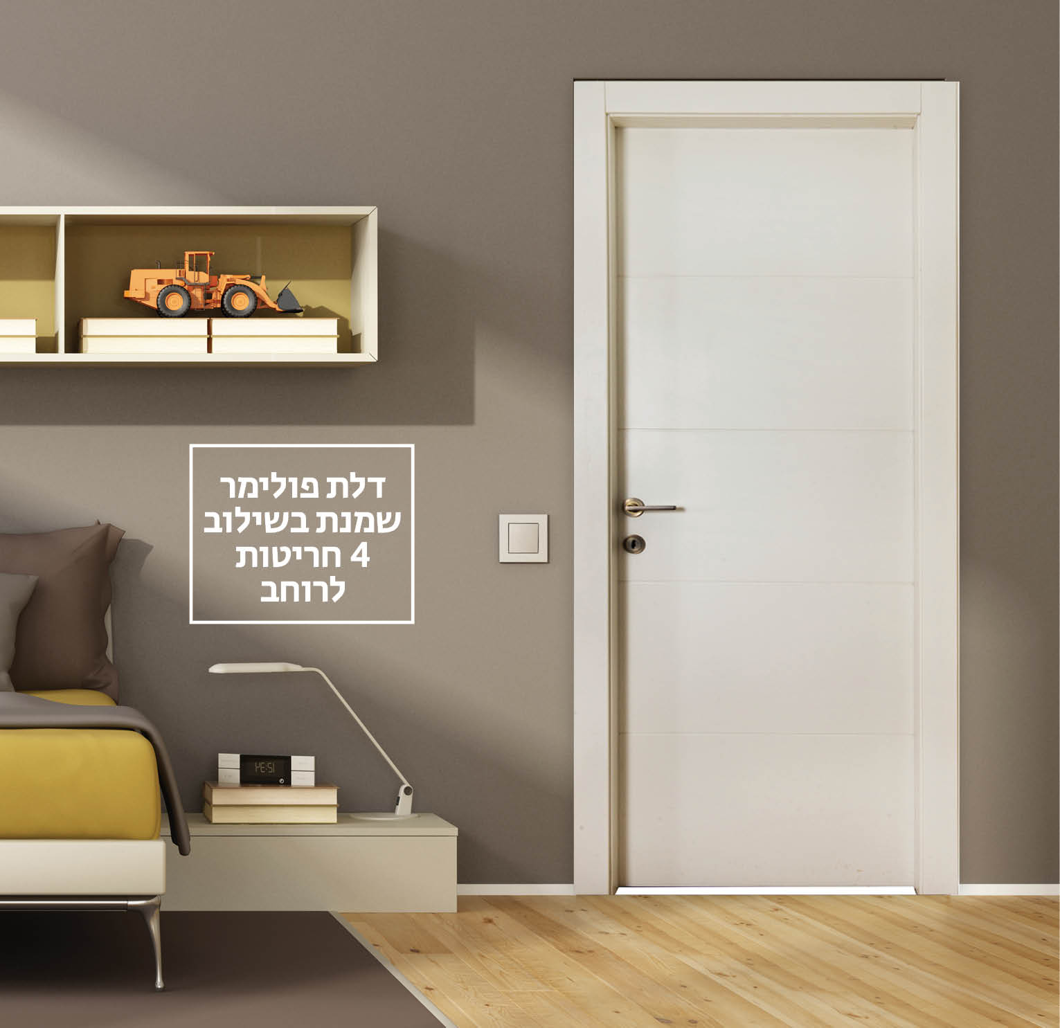 דלת פנים 4 חריצים לרוחב בצבע שמנת