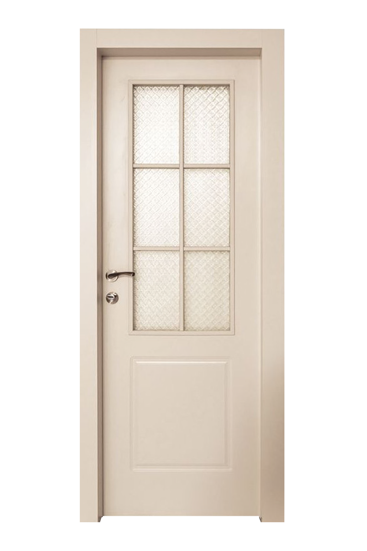 דלת פנים בתוספת 6-חלונות מרובעים לאורך בצבע לבן